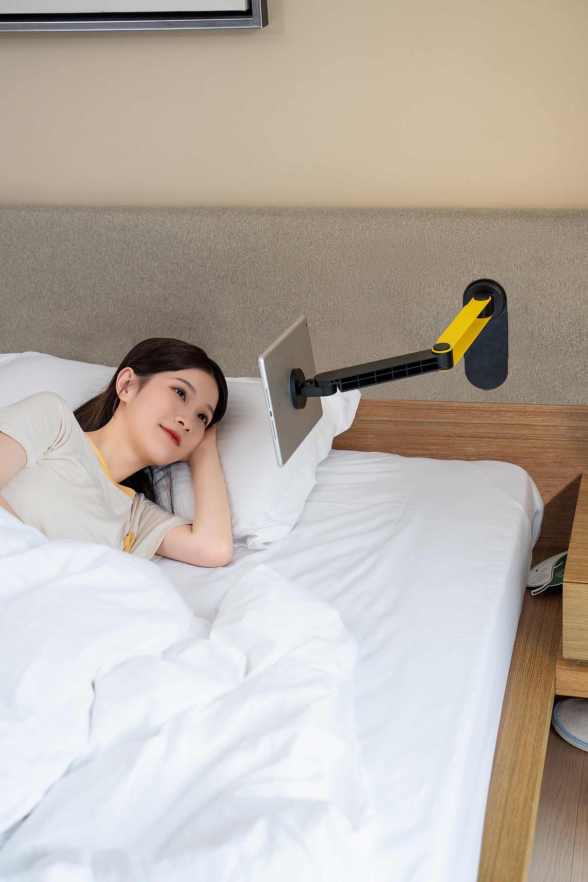 Designed to provide the flexibility of watching your tablet from any direction, holding it completely steady and vibration free. The tablet arm mount can be fitted next to your couch, bed or even in the bathroom