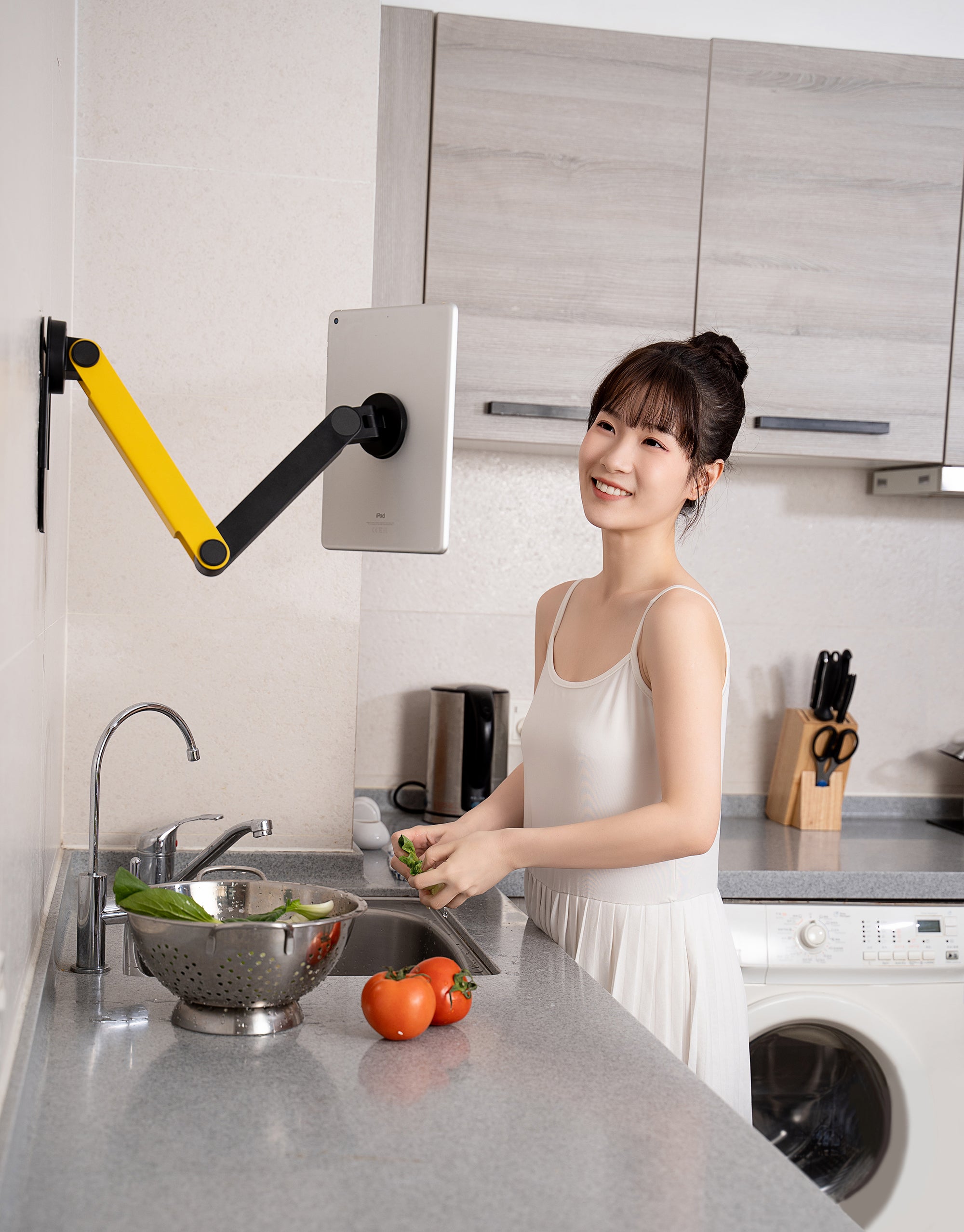Achieve a seamless, adaptable viewing experience with this innovative tablet mount, perfect for multitaskers, home cooks, and tech enthusiasts. The first of its kind, it combines stability and flexibility for all your tablet needs.
