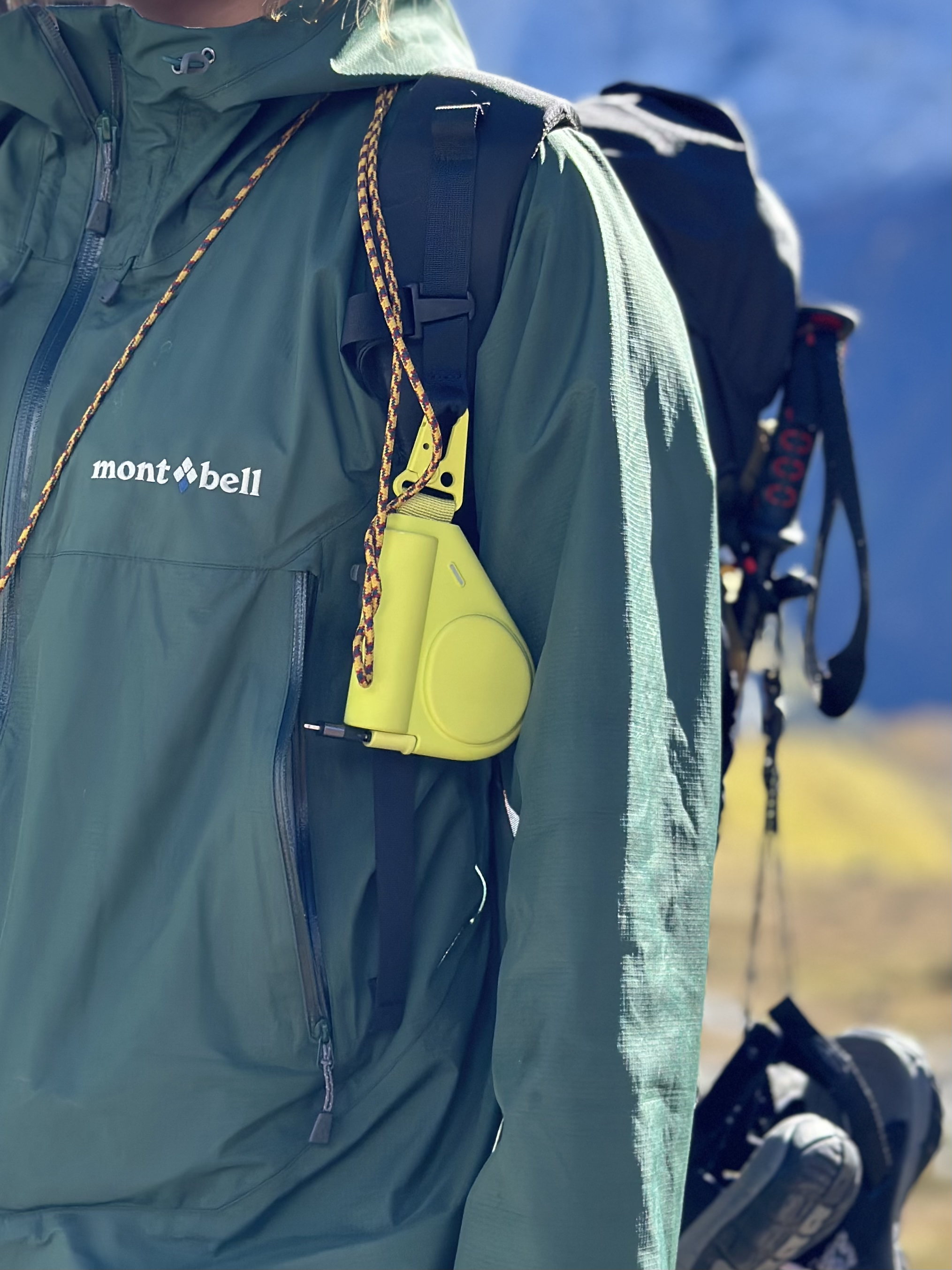 MChaos 穿戴式行動電源,搭配登山扣和可伸縮電纜