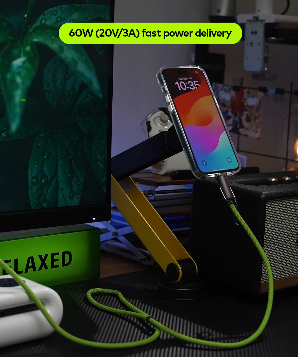 The easily removable lanyard doubles as a 4ft (120cm) long cable you can wear when you go out without the need for a pocket for it. It delivers fast 60W power to various devices, so you can pack less and travel more!