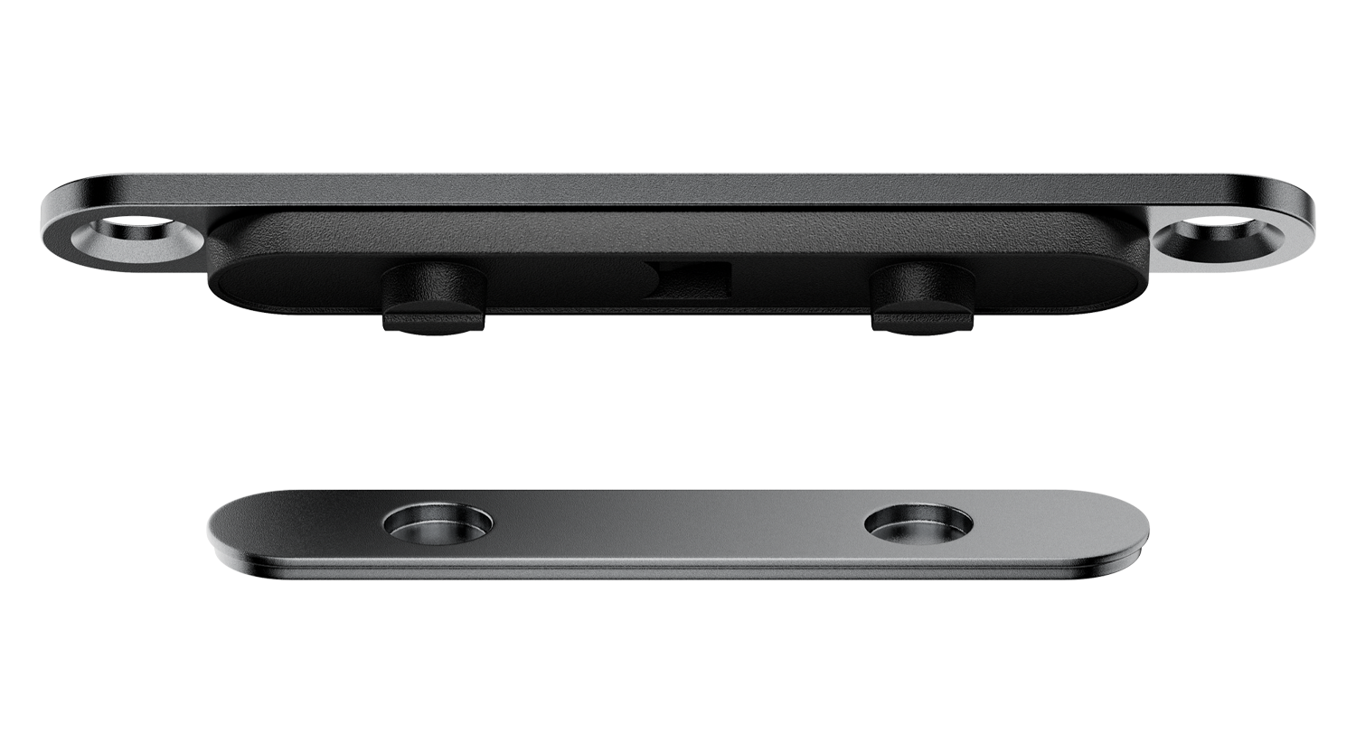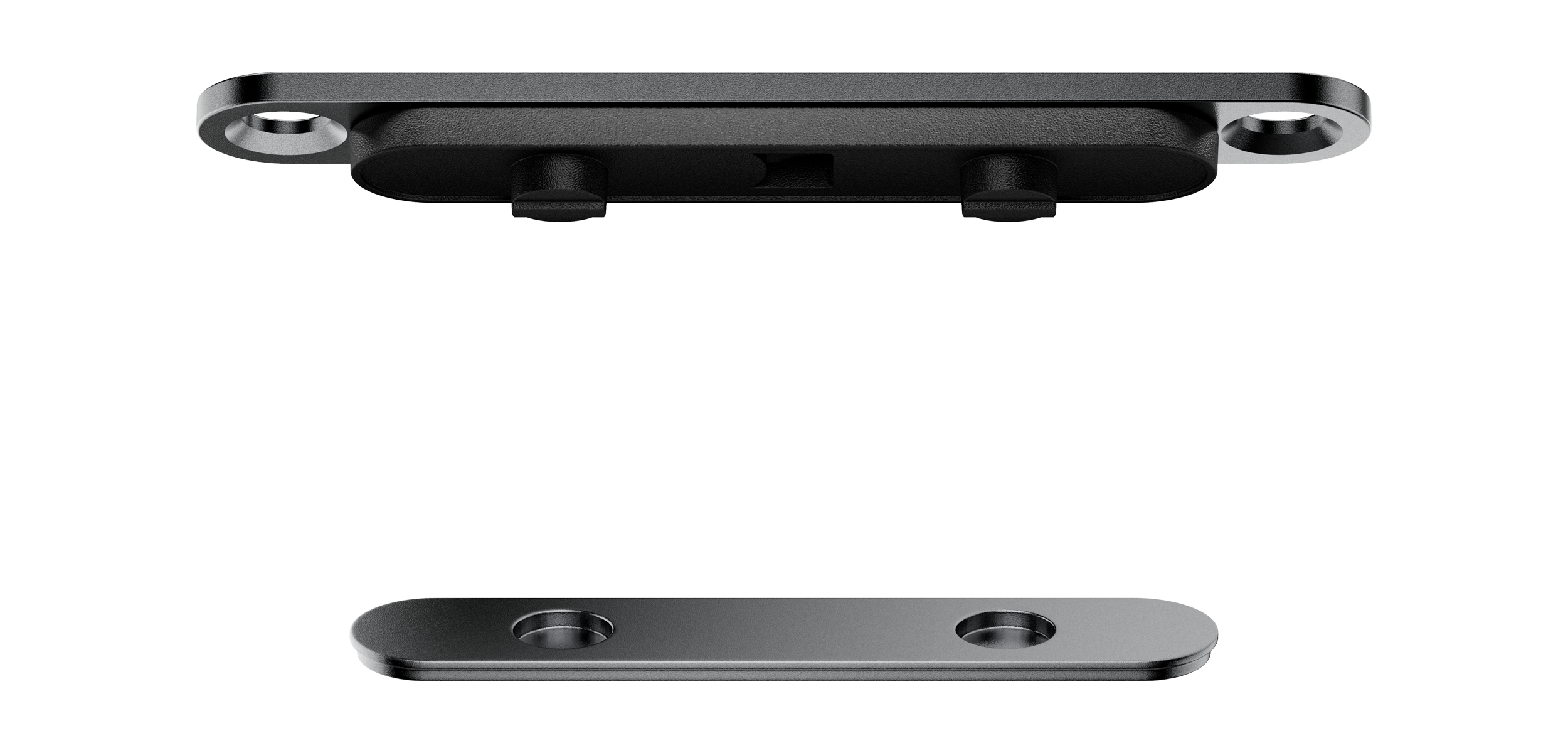 Hooks up with the lanyard via carabiners. Connects to the plate both magnetically and mechanically.